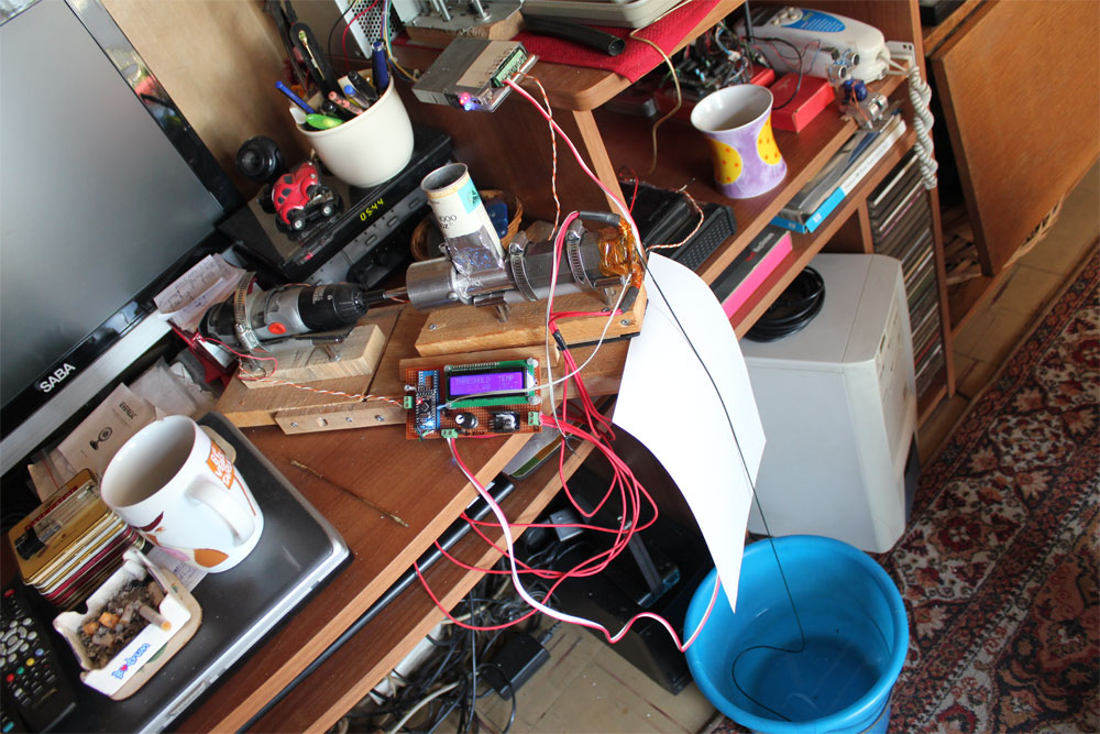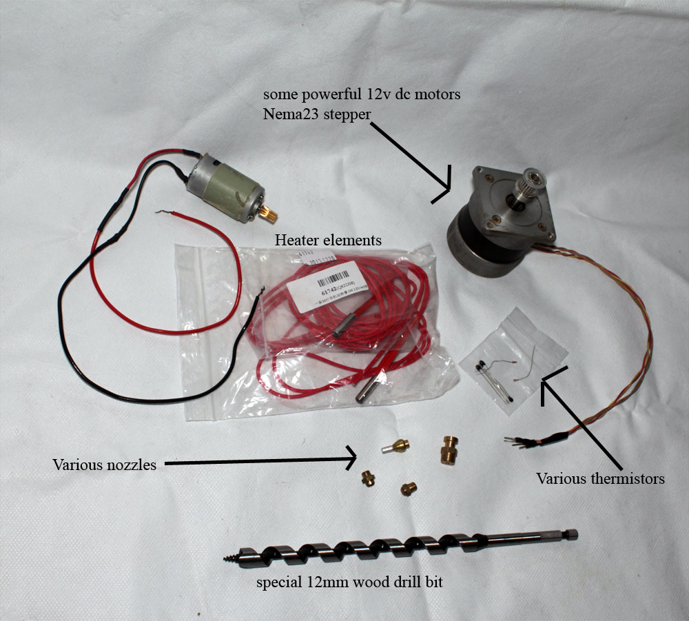 - We all know that filament is the most important part of 3d printing... And we also know that these are neither cheap nor easily accessible... So I decided to make my own homemade filament extruder. After some research on internet, I decided to use this simple design which is the core of many commercial filastruders. I prepared a simple CAD model for you to conceptualize the design easily. All these parts are easily found at every DIYer's parts bin. Only serious design I made is the steel barrel body which is now being made by one of my friends who has a lathe. As can be understood, plastic pellets (or small cut plastic) is loaded from the upper cone and the screw carries them to the front where they are being melt and forced out of a brass nozzle (a natural gas or propane nozzle mainly) to form a filament. According to my calculations system can be driven with a powerful dc gearmotor or a big stepper like the one in the pic (nema23). Even a household drill can drive the system for few hrs... I designed the system to make 1.75mm filament and found nozzles that can do the job. the radius of output filament can be monitored by a sensor for accuracy but I do not think I will need that as long as the shaft is driven at constant speed... As for the heating control, I decided to use the same ceramic 12v heaters and 100k thermistors used in reprap printer extruders (actually there will be more than one on the front end around nozzle). There are simpler and cheaper solutions for heat control, such as constant temp PTC thermostats but as the name implies these are made to keep the heating at a predefined constant temp. Actually I want to make tests for different types of plastics ( including waste plastics such as PE bottles) that is why I decided to have Arduino controlled heater&thermistor combination under PID control because various plastics will need different melting temps...