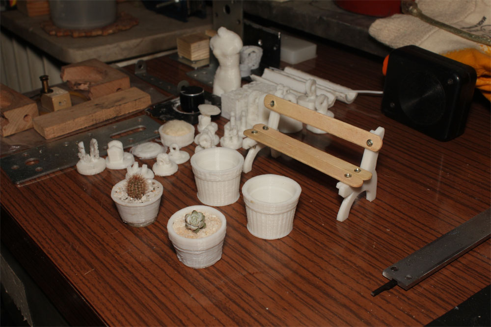 Nowadays I perfected the printer settings and upgraded to latest Marlin firmware. I also began to use blue painter's tape which helps in sticking of the first layer better. I added a USB led light for night printing. While test printing I happened to own many miniature garden ornaments. Applications on my garden pages... | ![]() |